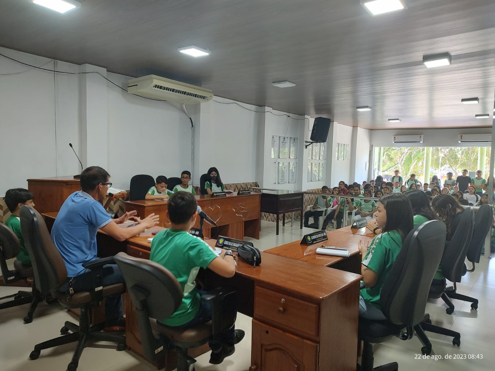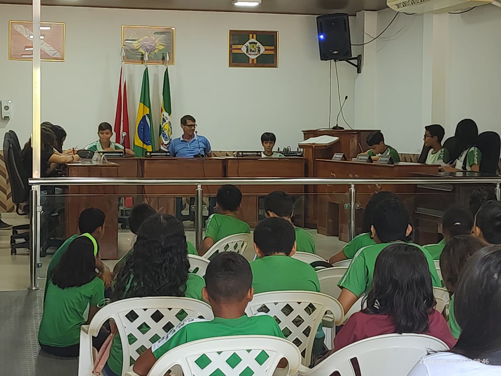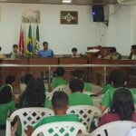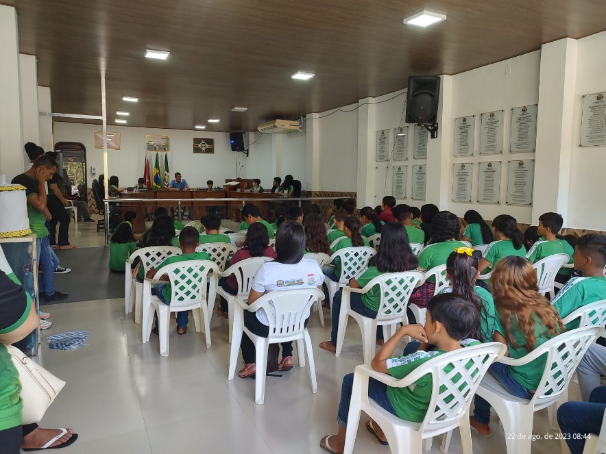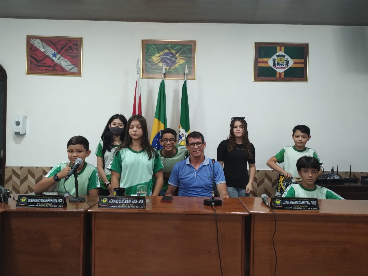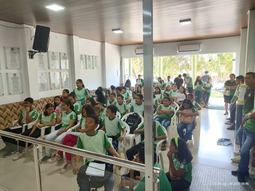 A Câmara Municipal de Peixe-boi, sob a presidência do Exmo. Sr. Adriano Oliveira da Silva, recebeu os alunos das turmas do 6º ano (A) e 6º ano (B) e seus professores responsáveis, Cosmo e Alexandre, da E. M. E. F. Profª
